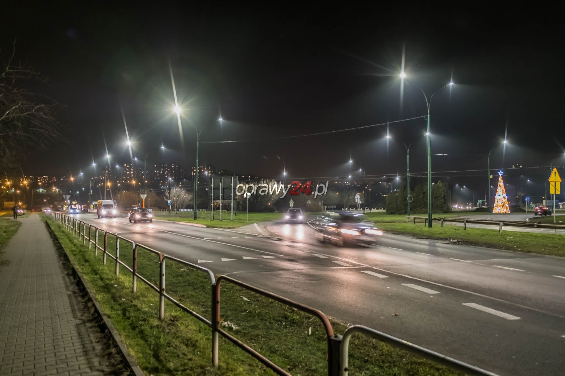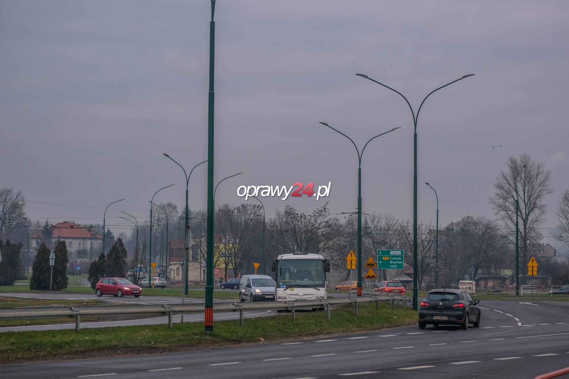 Kilka miesięcy temu na skrzyżowaniu zwanym „nerką” w Będzinie wymieniono oświetlenie. Stare oprawy sodowe o mocach 150 – 250 W zostały zastąpione nowymi wykorzystującymi technologię LED. Zarówno słupy jak i wysięgniki nie zostały wymienione. Inwestycja obejmowała nie tylko samo skrzyżowanie, ale także przyległe ulice: Gzichowską do parku Muzeum Zagłębia, Małobądzką do przejścia podziemnego, aleję Hugona Kołłątaja do skrzyżowania z ulicą Podzamcze. Łącznie na „nerce” i przyległych ulicach wymieniono 116 opraw oświetleniowych. Nowe oświetlenie LED zyskała także ulica Czeladzka od stacji Lotos do wiaduktu nad drogą krajową nr 86. Na tym odcinku wymieniono 38 opraw, w tym 5. na ulicy Zwycięstwa w pobliżu skrzyżowania z ul. Czeladzką. Nowe oprawy oświetleniowe to model Schréder Teceo 1 z matrycą 48 LED o mocy maksymalnej 107 W. Zmodernizowano także maszt oświetleniowy z sześcioramienną głowicą na skrzyżowaniu ulic Czeladzkiej i Śmigielskiego. Modernizacja polegała na demontażu 6 opraw sodowych i montażu 3 opraw LED Teceo 1 z matrycą 32 LED o mocy maksymalnej 71 W. Wszystkie nowe oprawy są wyposażone w matryce LED, które emitują światło o barwie neutralnej białej (4000K). Ogółem zamontowano 157 nowych opraw LED.
