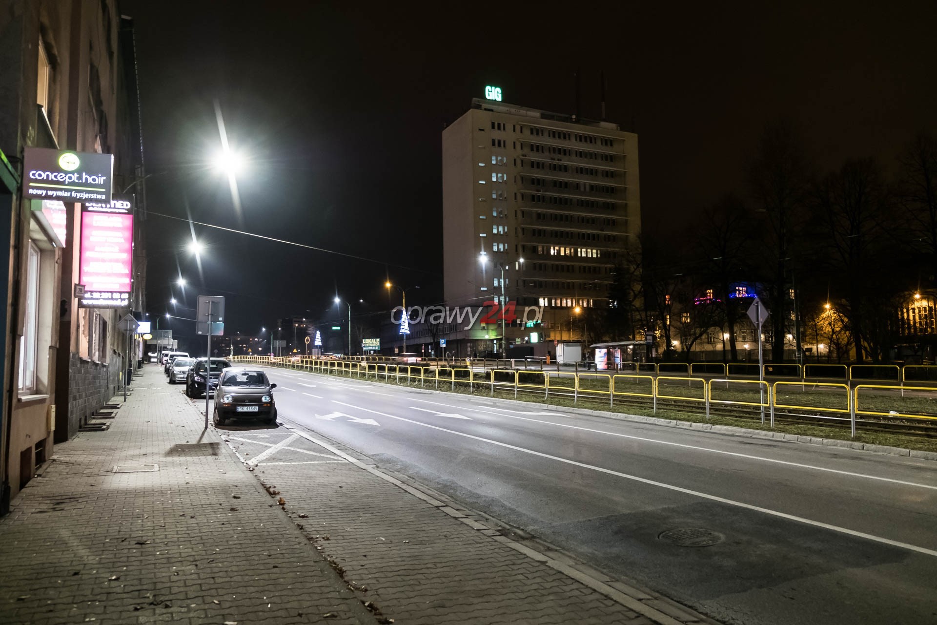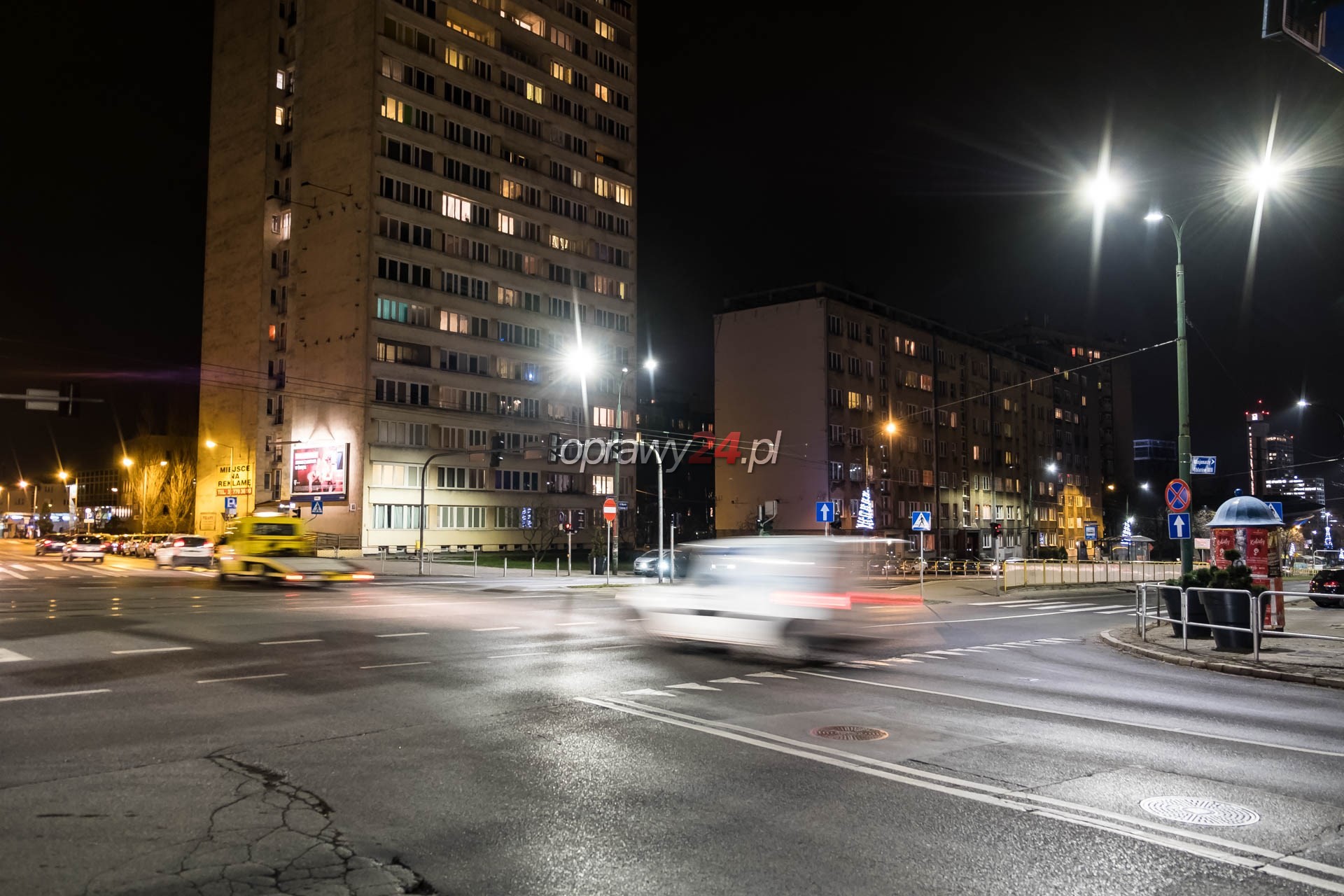 Aleja Korfantego w białym świetle