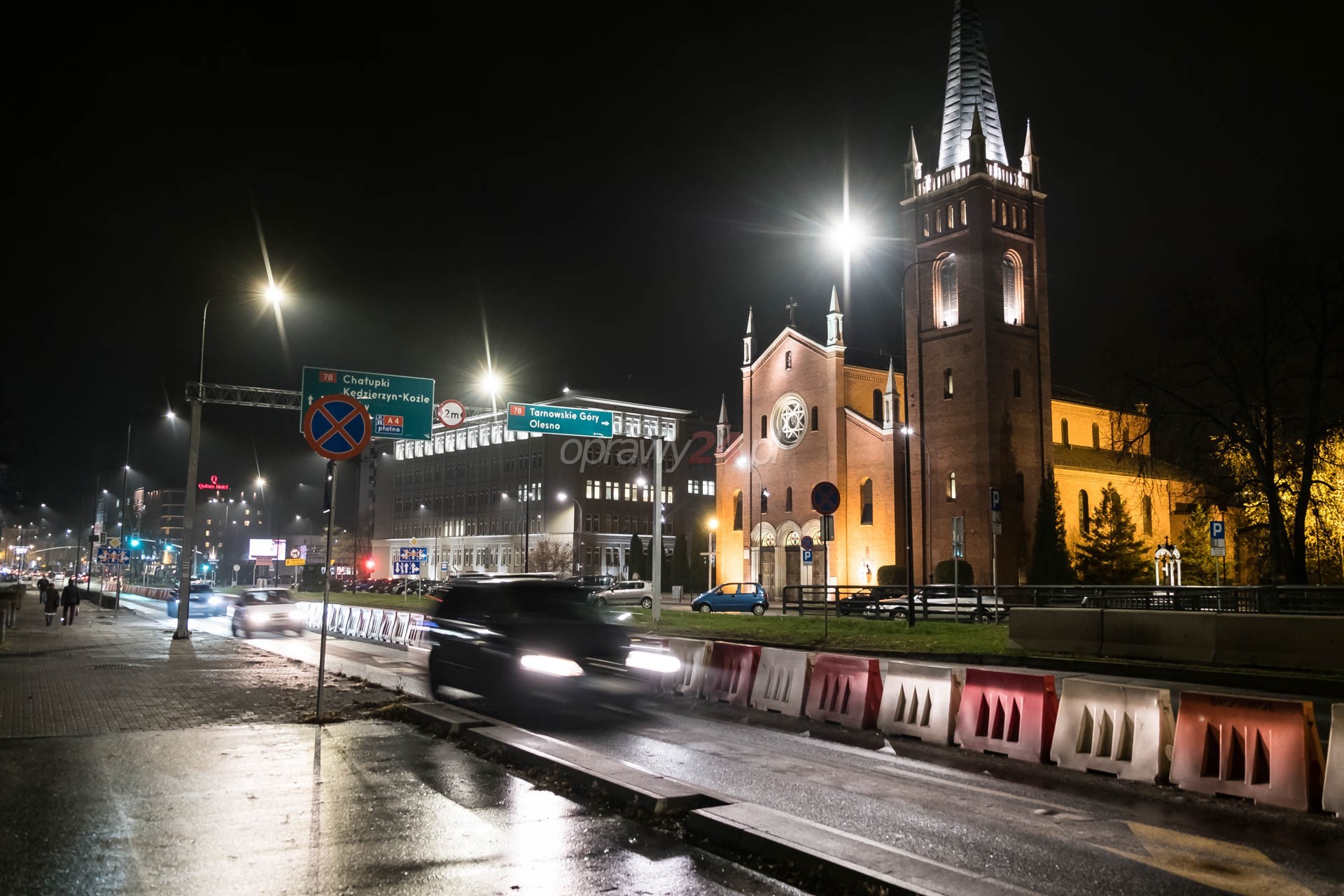 Ulica Dworcowa z nowym oświetleniem