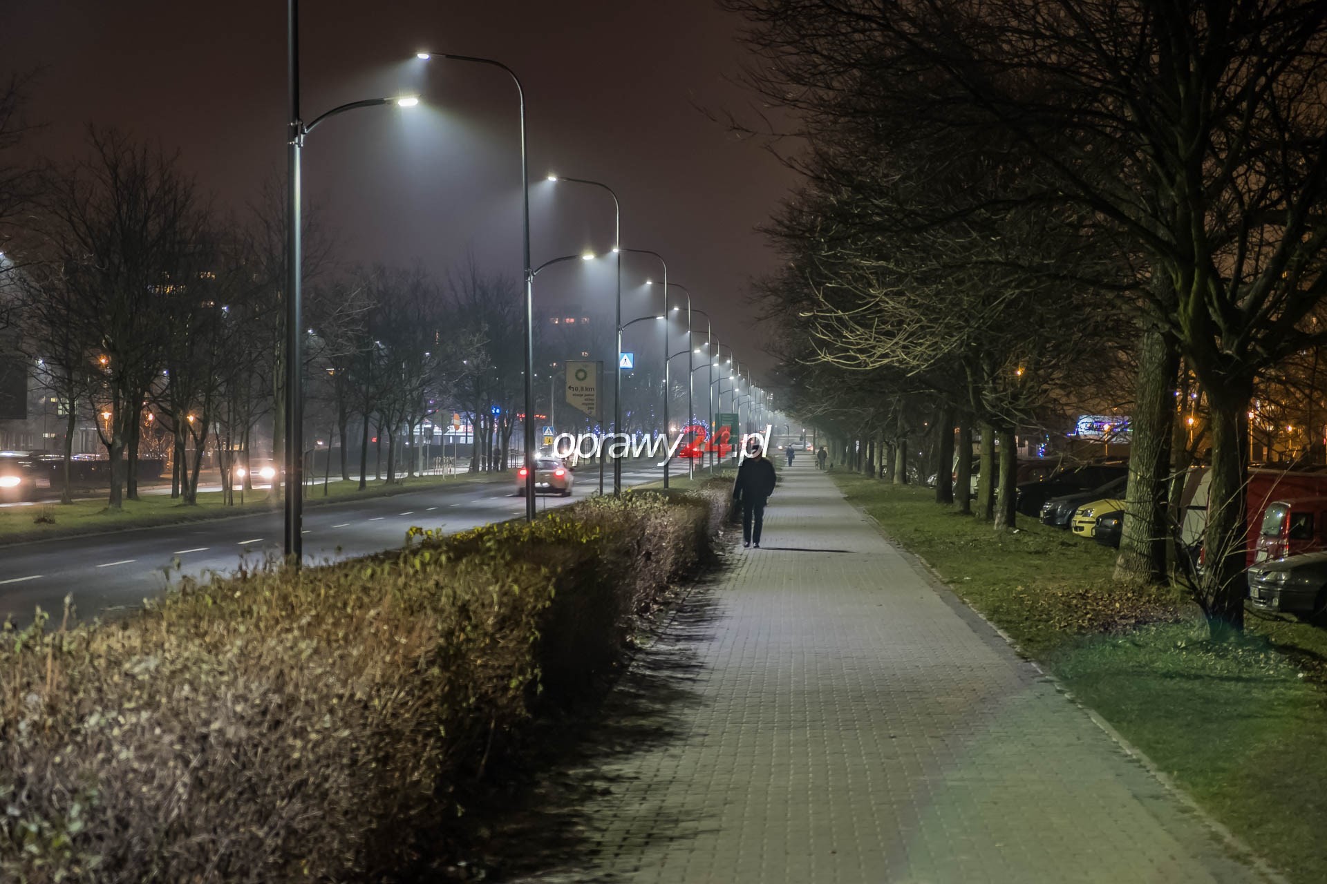 Aleja Korfantego w białym świetle