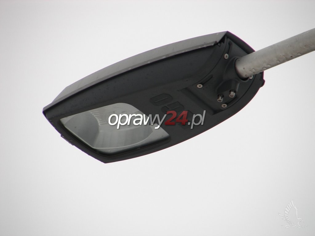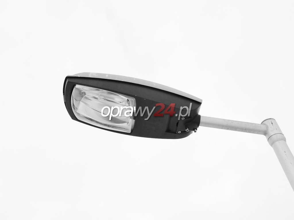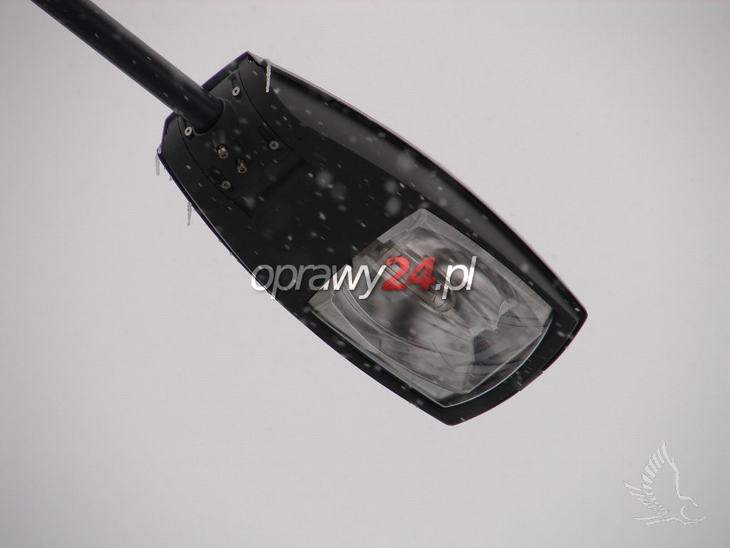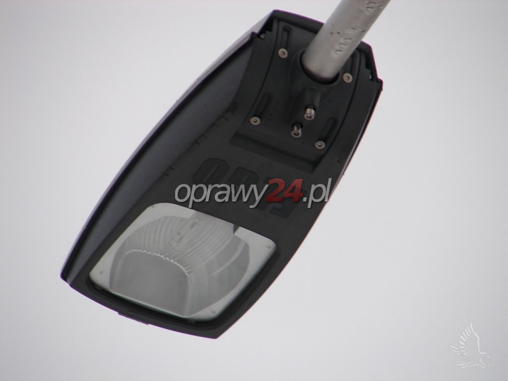 Budowa. Korpus oprawy jest wykonany z wysokociśnieniowego odlewu aluminium oraz malowany proszkowo. Oprawa składa się z części górnej i dolnej, połączonych ze sobą stalowym zawiasem. W skład górnej części korpusu wchodzi: jednoczęściowy odbłyśnik tłoczony z aluminium o najwyższej czystości oraz elektropolerowany, uszczelka poliuretanowa, wykonana z odlewu aluminiowego klamra szczelnie zamykająca korpus. W dolnej części korpusu znajduje się płyta montażowa z osprzętem elektrycznym i oprawką źródła światła. Istnieje możliwość regulacji oprawki pionowo lub poziomo względem powierzchni odbłyśnika. Kolejnym elementem dolnej części korpusu jest filtr umożliwiający wyrównywanie ciśnienia pomiędzy wnętrzem oprawy i otoczeniem bez zasysania nieczystości. Komora optyczna oprawy jest chroniona kloszem , który mógł być wykonany z poliwęglanu lub jako płaska hartowana szyba. Oprawa jest przeznaczona do zamontowania na pionowym słupie o średnicy 42 ÷ 60mm lub poziomym wysięgniku. Umożliwia to znajdujący się w dolnej części korpusu uchwyt montażowy. Ponadto pozwala on na płynną zmianę kąta nachylenia oprawy w stosunku do płaszczyzny drogi. Wynosi on odpowiednio: przy pionowym słupie 0° / +15°, przy wysięgniku poziomym -10° / +5°.