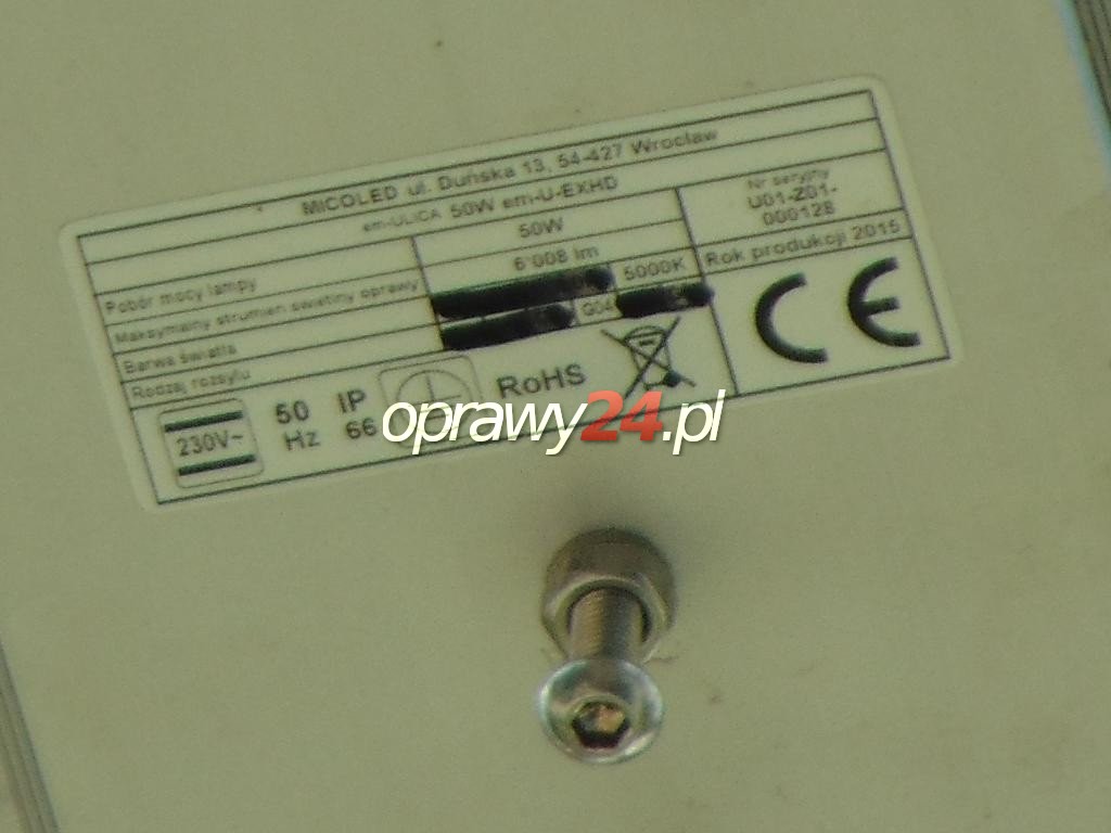 Budowa. Obudowa oprawy jest wykonana z aluminium i stanowi jednocześnie radiator i uchwyt montażowy. Oprawa jest wyposażona w układ optyczny w postaci soczewek ze szkła optycznego polerowanego i hartowanego oraz elektromagnetyczny układ zasilający. Oprawa jest przeznaczona do zamontowania bocznego na wysięgniku o średnicy końcówki 48 – 60mm.
