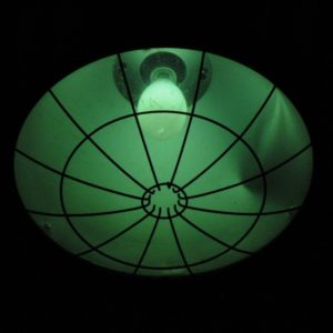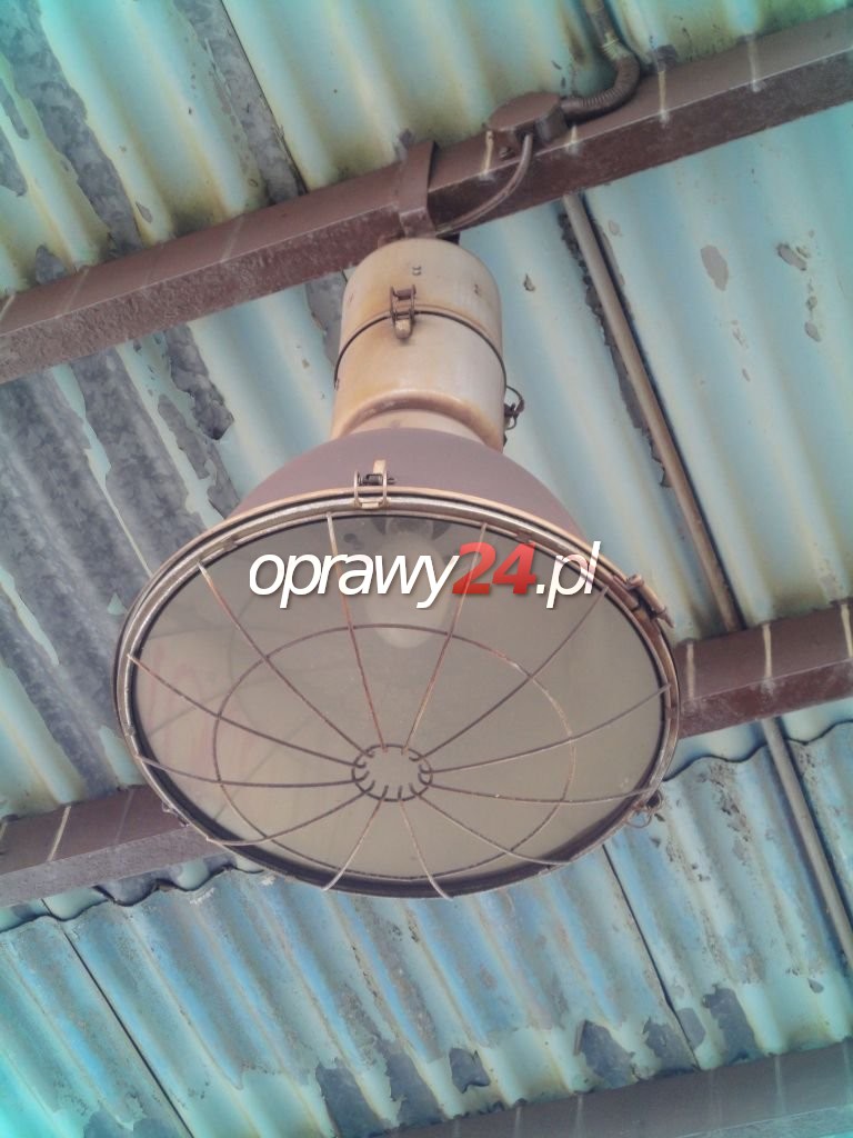 Budowa. Dwuczęściowa komora osprzętu jest wykonana z blachy stalowej i malowana proszkowo. górna i dolna część komory osprzętu połączone za pomocą klamer. Część łącząca obudowę osprzętu z odbłyśnikiem i osłaniająca oprawkę źródła światła, wytłaczana z blachy stalowej, malowana proszkowo. Oprawa jest wyposażona w gładki odbłyśnik aluminiowy, polerowany chemicznie, o symetrycznym rozsyle światłości. Komora lampowa jest chroniona szybą ze szkła hartowanego mocowaną do odbłyśnika za pomocą klamer. Szyba jest zabezpieczona ażurową siatką ochronną z drutu stalowego, ocynkowanego. Możliwość różnych systemów mocowania np. liny, śruby, haki, itp. Oprawa standardowo wyposażone w ucho z otworem o średnicy 12,5mm.