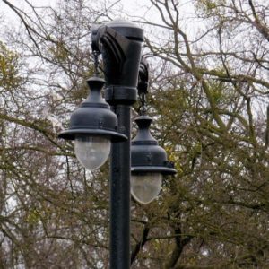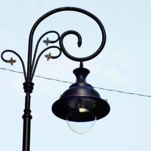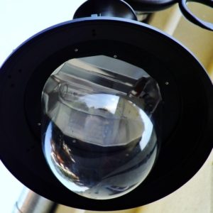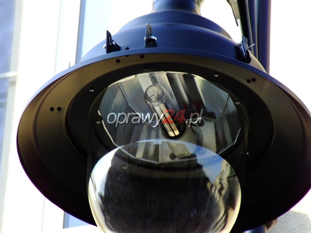 Budowa. Obudowa oprawy jest wykonana z blachy stalowej i malowana na dowolny kolor z palety RAL. Oprawa mogła być również wykonana z blachy aluminiowej, miedzianej, lub mosiężnej. Komora optyczna składa się z odbłyśnika wykonanego z anodowanego aluminium o wysokiej czystości oraz przezroczystego formowanego wtryskowo klosza z poliwęglanu, który jest odporny na uderzenia i niekorzystne warunki termiczne. Istnieje możliwość regulacji układu optycznego w celu dowolnego kształtowania bryły światła. Korpus oprawy jest zamocowany na zawiasie i przykręcany za pomocą dwóch śrub z łbem motylkowym, co umożliwia szybki i łatwy dostęp do układu elektrycznego i wymianę źródła światła. Zalecana wysokość montażu: 8 – 12m.