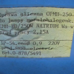 | Źródło Światła | lampa sodowa, Wysokoprężna lampa metalohalogenkowa, Wysokoprężna lampa rtęciowa, Wysokoprężna lampa sodowa |