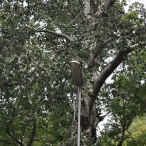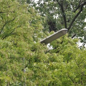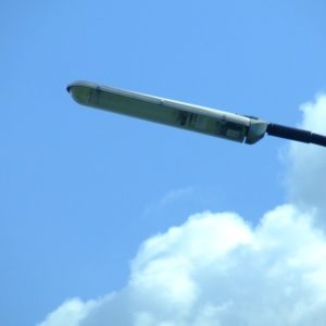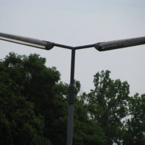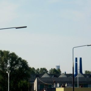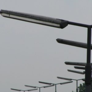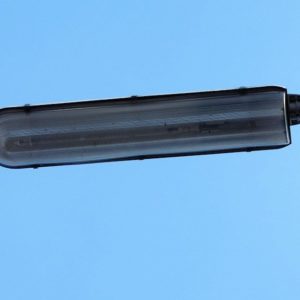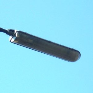 Budowa. Oprawa była dostępna w trzech rozmiarach. Korpus oprawy, w kolorze białym, jest wykonany z poliesteru wzmacnianego włóknem szklanym, z zabezpieczeniem przeciwko promieniowaniu UV. Oprawa posiada klosz z metakrylanu, który jest odporny na działanie UV. Oprawa SRS201 jest przeznaczona do montażu bocznego. Standardowy kąt nachylenia na szczycie słupa wynosi 5°. Zalecana wysokość montażowa wynosi: 8–15 m (w zależności od konfiguracji)