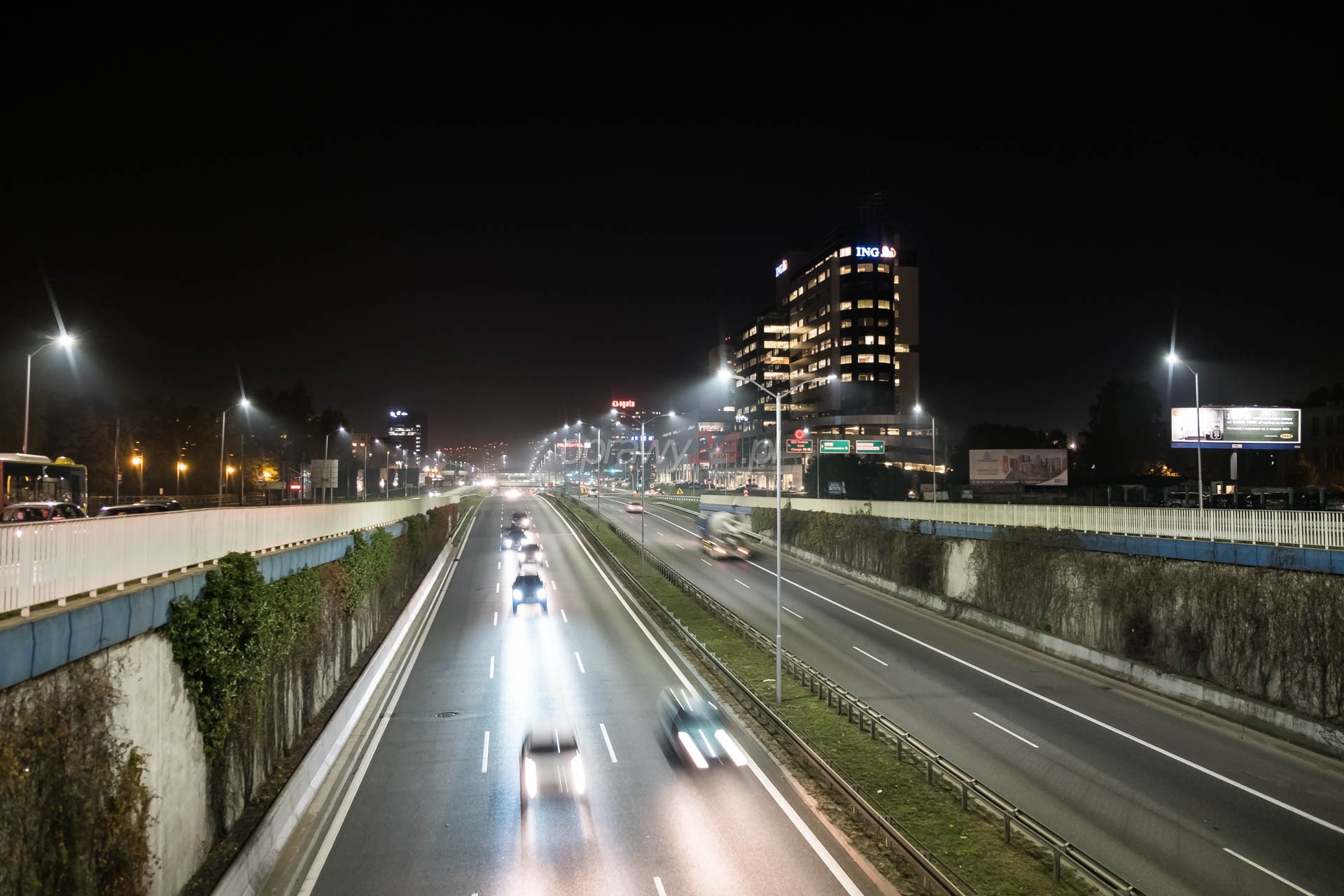 Katowicki odcinek DTŚ w świetle LED